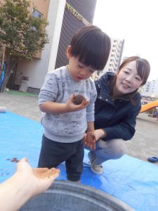 始めはお母さんと二人で泥あそびをしていたお友だちが