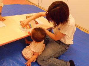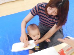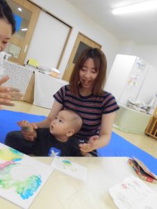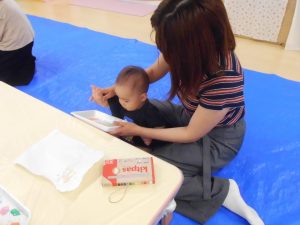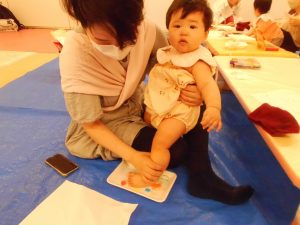 慣れてきたところで、お母さんと一緒に手形にも挑戦しました!!
