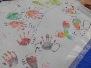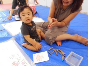 ぬるぬるするお米のオイルの感触を「手」や「足」で感じながら、手形や足形にもチャレンジしました✨