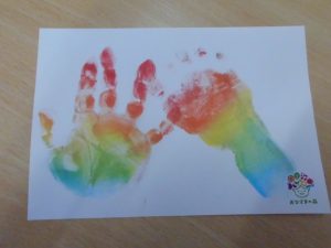 ゆっくり足や手を載せて、色の付いた手足を紙にそっと置いてみました!
