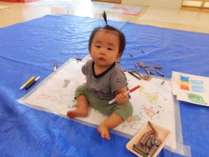 キットパスのきれいな色を見て「わたしも~」と自らキットパスに「手」を伸ばしていました!