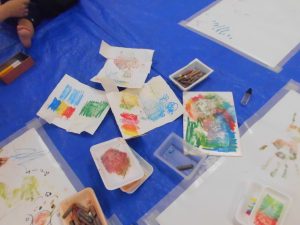 今回のイベントでは、牛乳パックや食品トレーのつるつるとした面をパレット代わりにして遊びました!