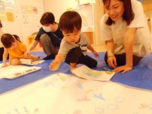 近くにいた保育者に「みてみて~」と両手を見せてくれるお友だちもいました!!