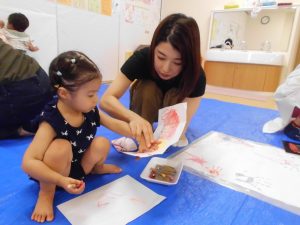 「どこに押そうかな?」とじっくり「頭」で考えて、自分の体重をかけて手形や足形を押していましたね!